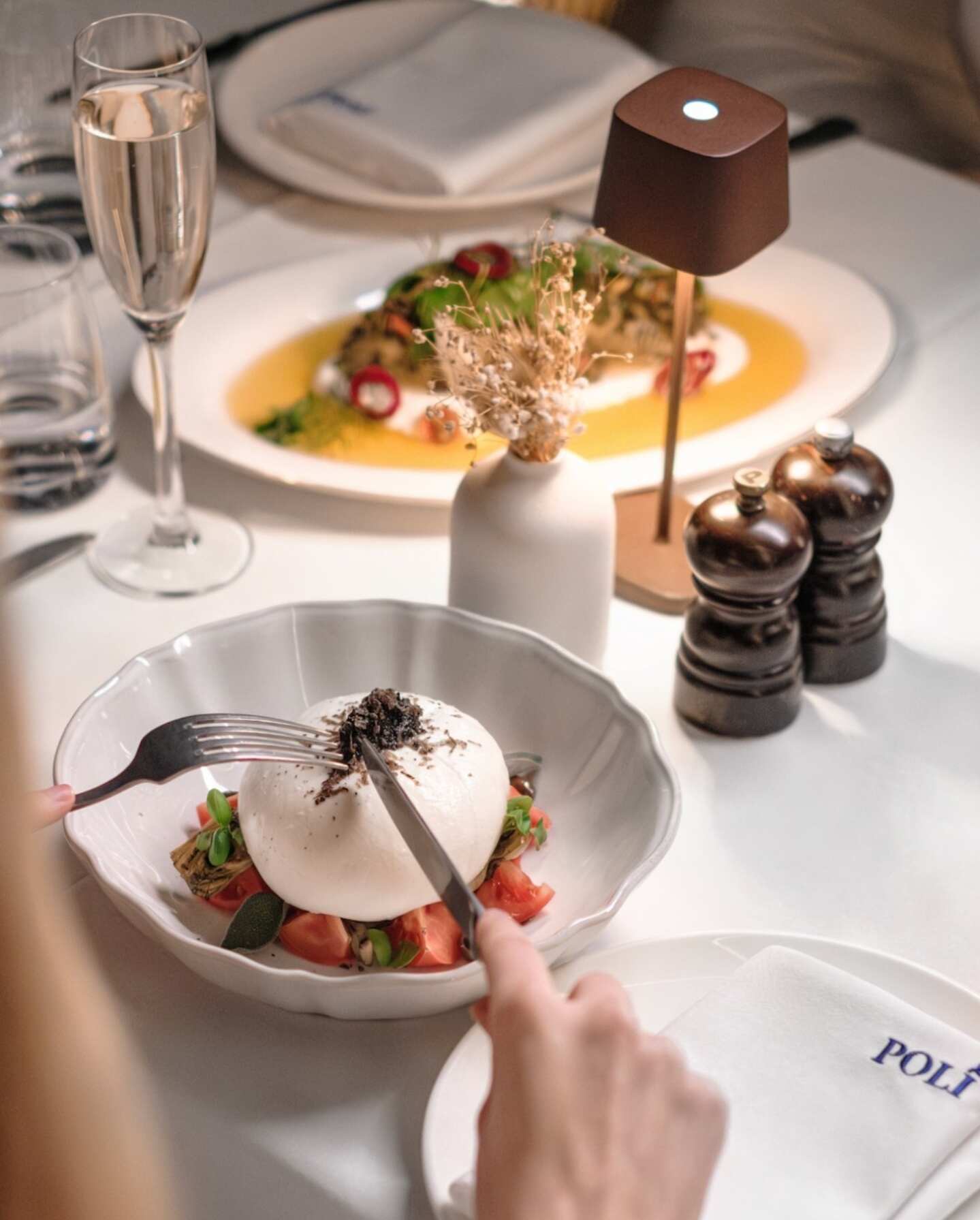 Poli’s design pays homage to Greek charm with a contemporary twist. The interiors feature a harmonious blend of monochrome storytelling and vibrant coastal hues, creating an atmosphere that is both nostalgic and refreshing. Every detail, from the imagery on the walls to the natural textures and open, airy spaces, is designed to evoke the spirit of Greece while offering a refined and sophisticated dining experience in the heart of Dubai.